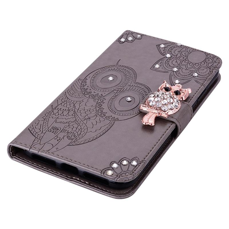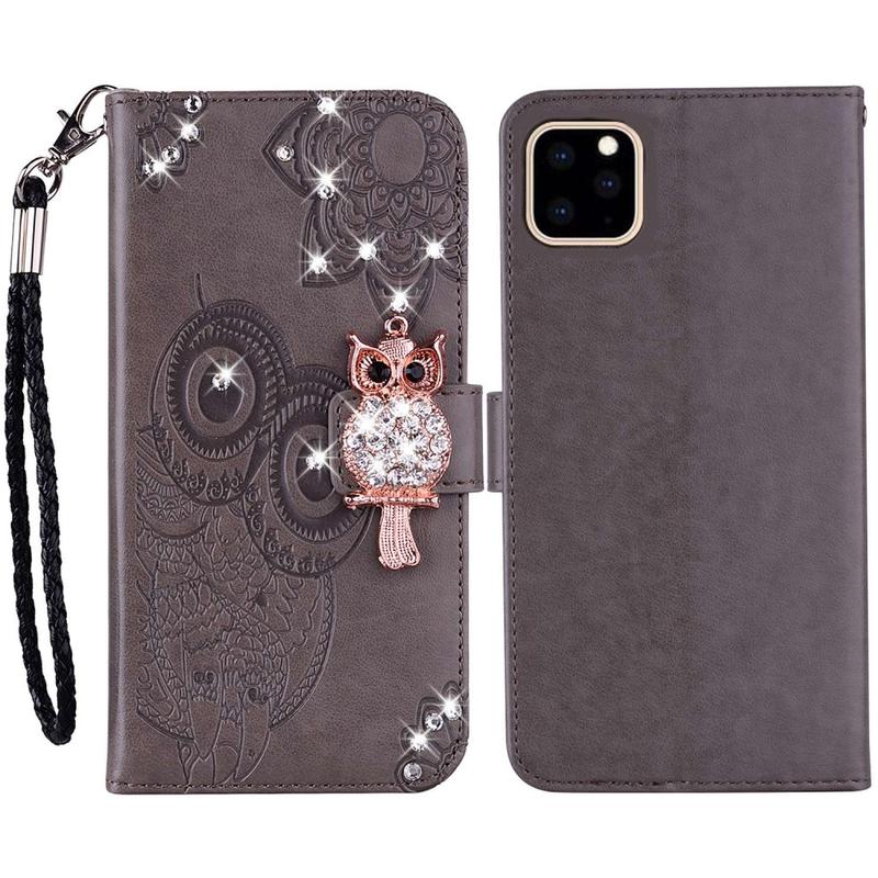iPhone 14 Pro Max Eule Strass Wallet Case - grau