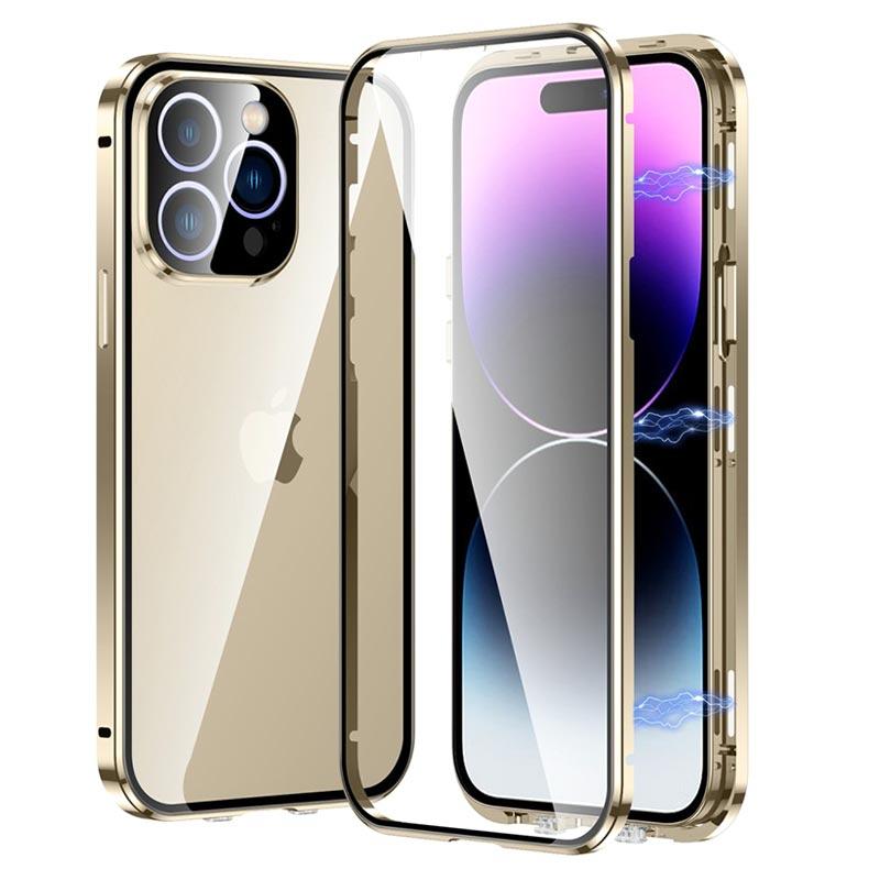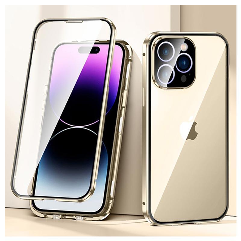 - iPhone 14 Pro Max-Case mit Metallrahmen und gehärtetem Glas für Vorder- und Rückseite