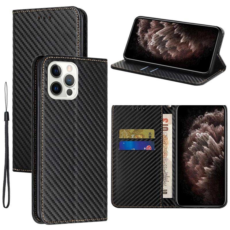 iPhone 14 Pro Wallet Schutzhülle - Karbonfaser - Schwarz