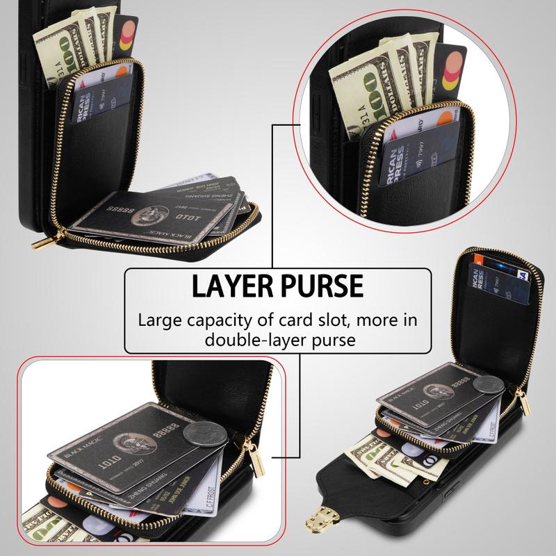 - Sicheres Zipper Wallet - Hardware-Schnalle und Reißverschluss halten Karten, Bargeld und kleine Gegenstände sicher.