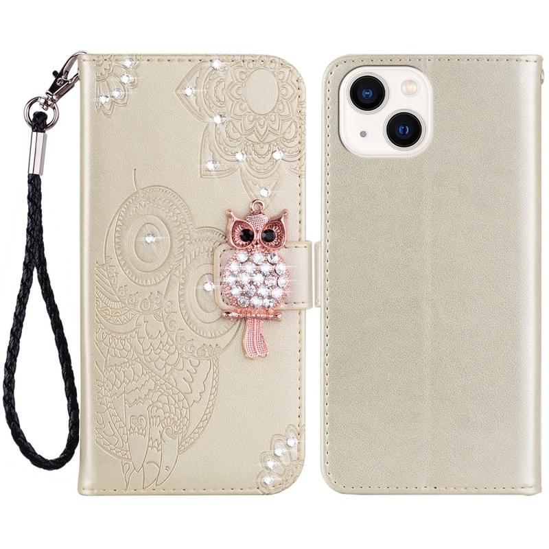 Eule Strass Wallet Hülle für iPhone 15