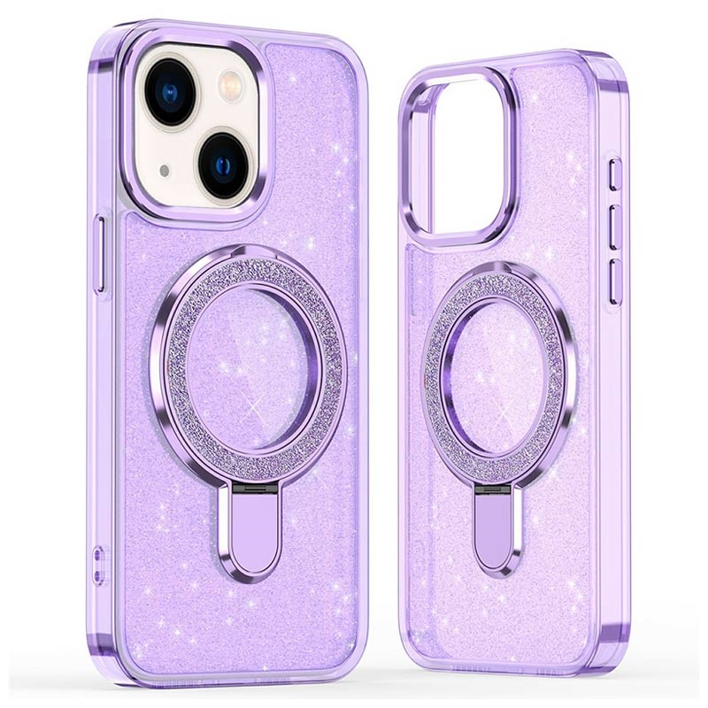 Glitter Hülle mit Kickstand für iPhone 15 - MagSafe kompatible TPU + PC Hybrid Kickstand Cover