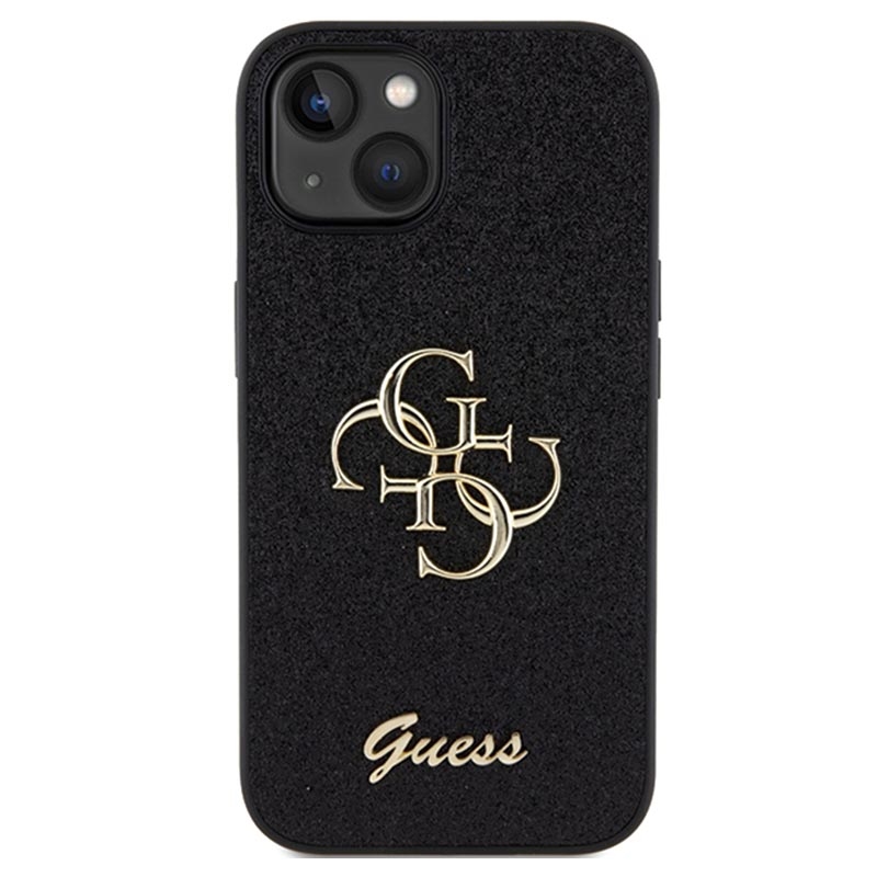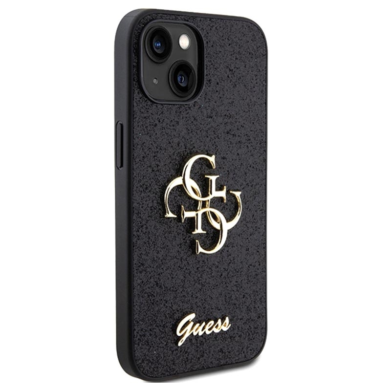 - Spektakuläre Guess Fixed Glitter 4G Metal Logo-Hülle für iPhone 15