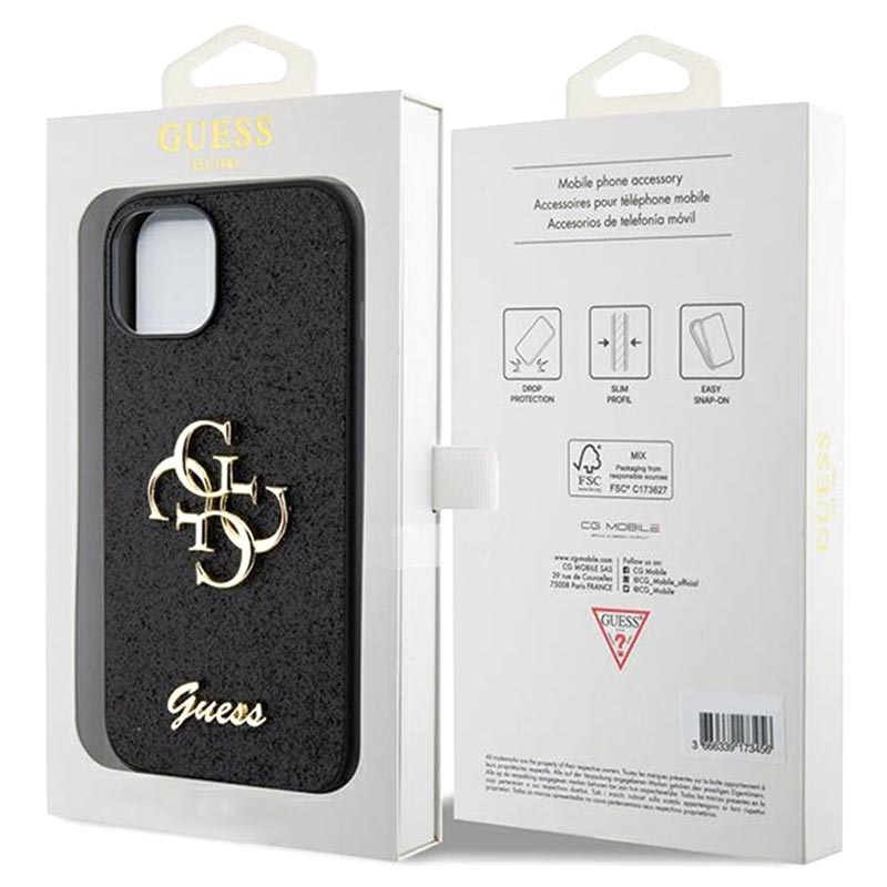 • Guess Fixed Glitter 4G Metal Logo Case für iPhone 15