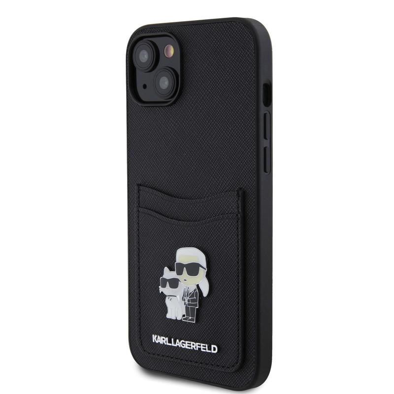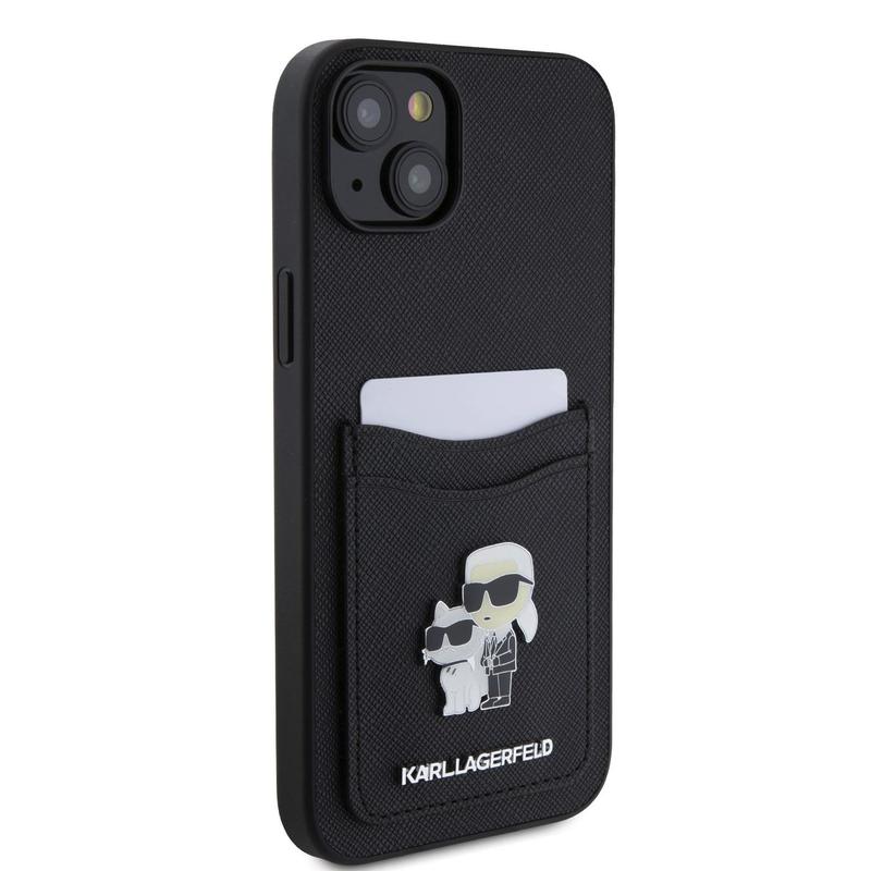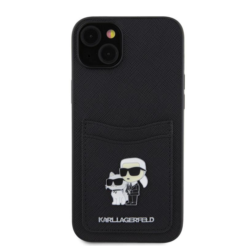 Karl Lagerfeld Saffiano Kartenschlitz Metall Karl & Choupette Hülle für iPhone 15