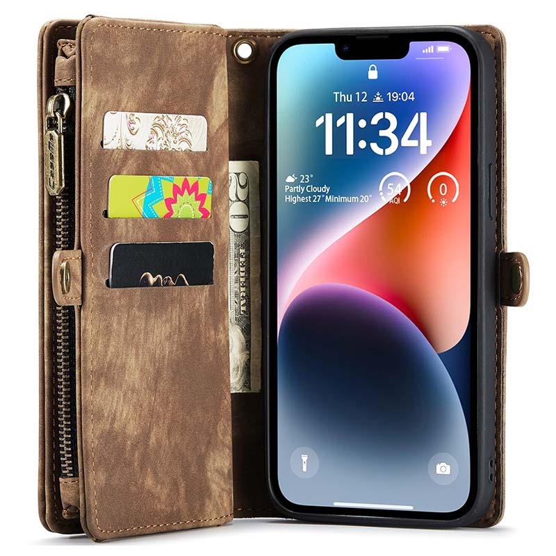 iPhone 15 Plus Caseme 2-in-1 Multifunktions Wallet Hülle - Braun