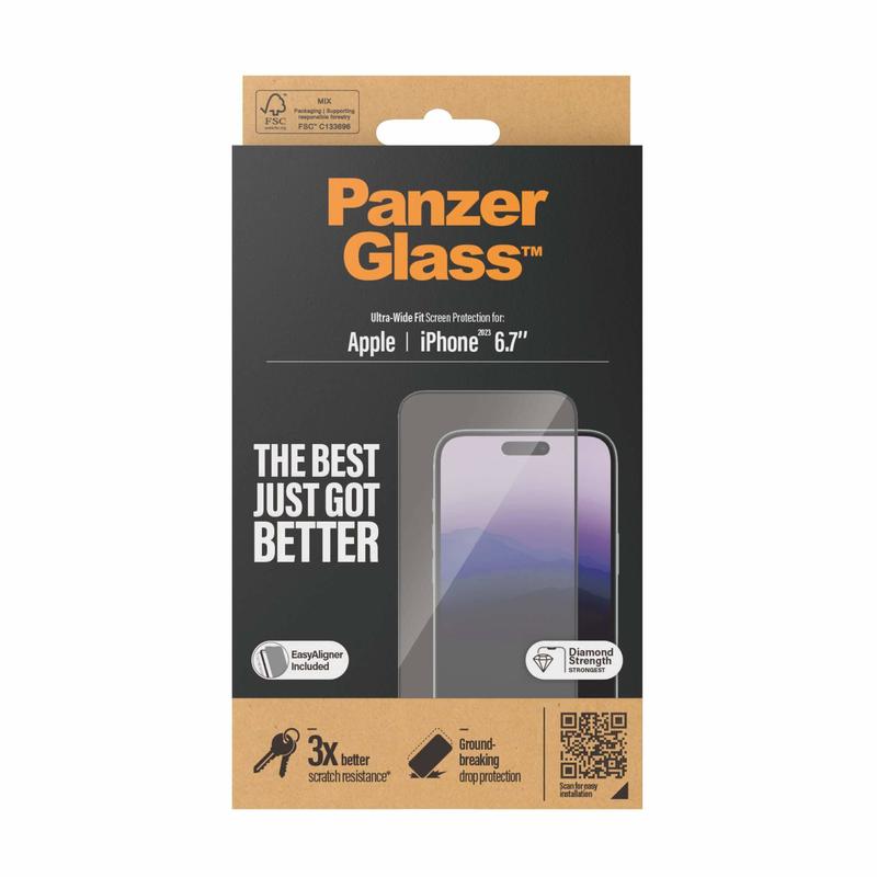 - Ultra-Wide Fit Displayschutzfolie aus gehärtetem Glas für iPhone 15 Plus von PanzerGlass