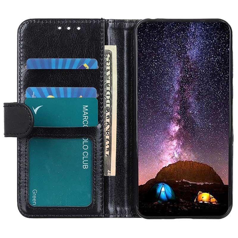 iPhone 15 Plus Wallet Schutzhülle mit Magnetverschluss - Schwarz