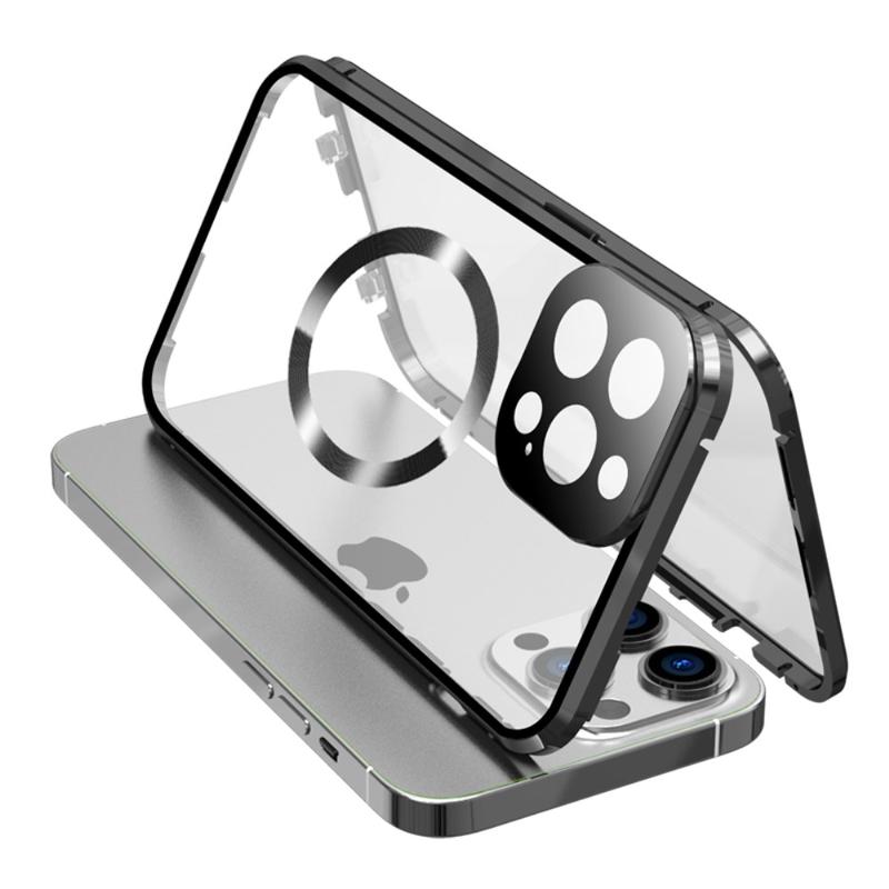 • iPhone 15 Pro Max Fall doppelseitigen HD gehärtetem Glas Telefon Abdeckung kompatibel mit MagSafe - schwarz