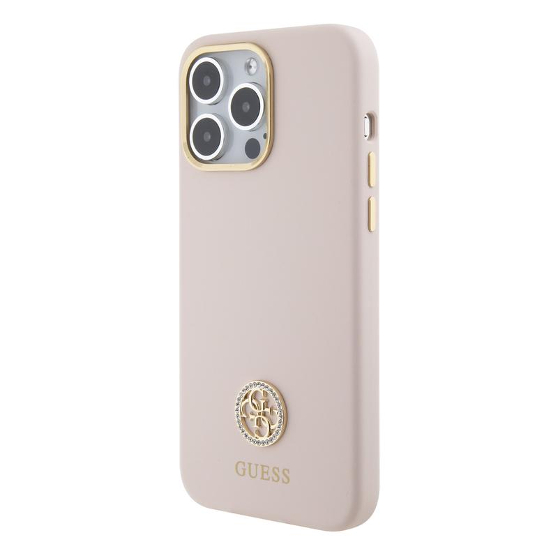 iPhone 15 Pro Max Guess 4G Strass Metall Logo Flüssigkeit Silikonhülle - Rosa