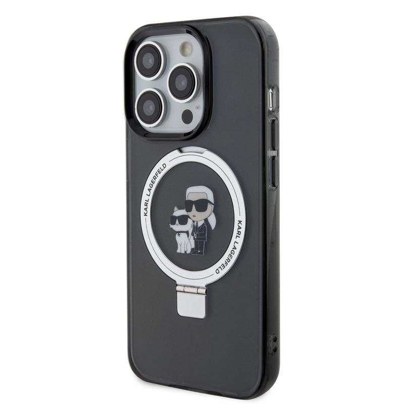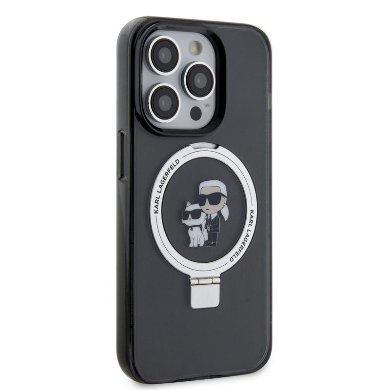 iPhone 15 Pro Max Karl Lagerfeld Ring Stand Karl & Choupette Mag Hülle - Schwarz