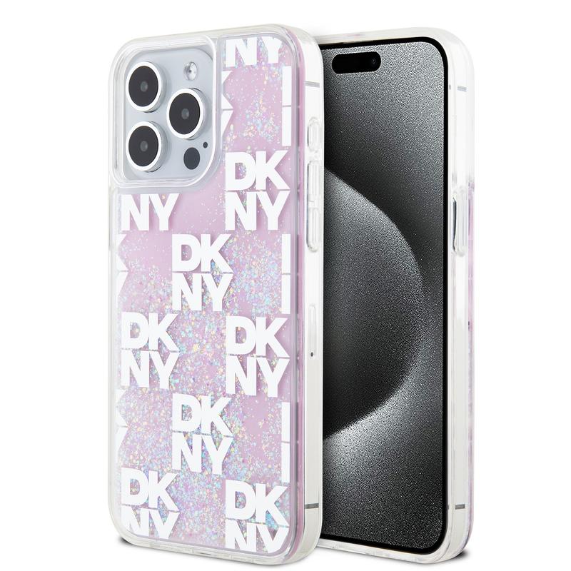 iPhone 15 Pro Max DKNY Liquid Glitter Checkered Pattern Case - Pink