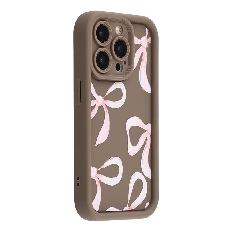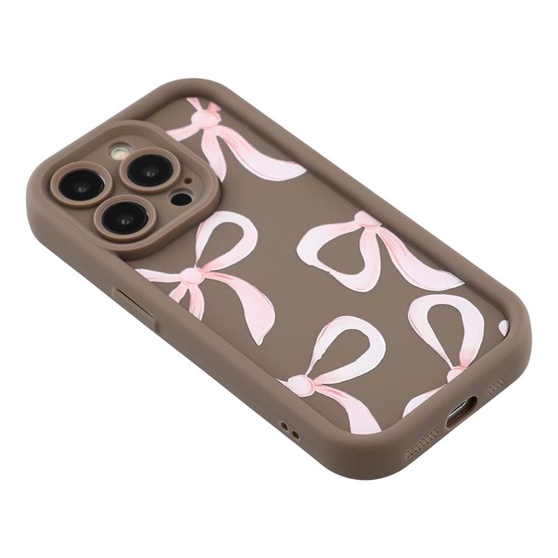 iPhone 15 Pro Max Stilvolle stoßfeste TPU-Hülle mit erhöhten Rändern - Braun / Große Schleife