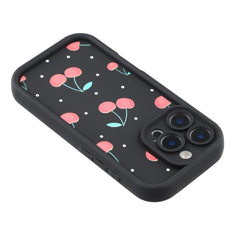 iPhone 15 Pro Stilvolle stoßfest TPU-Hülle mit erhöhten Kanten - Schwarz / Kirschen