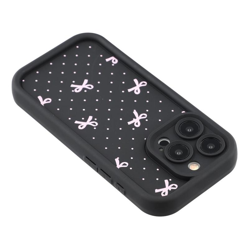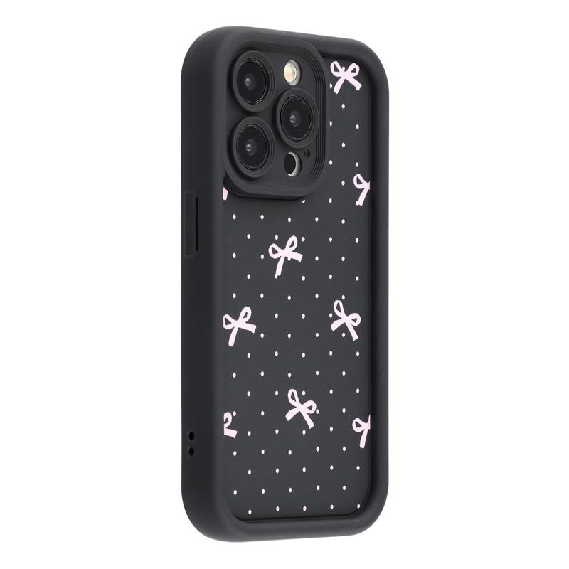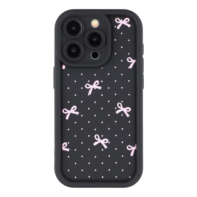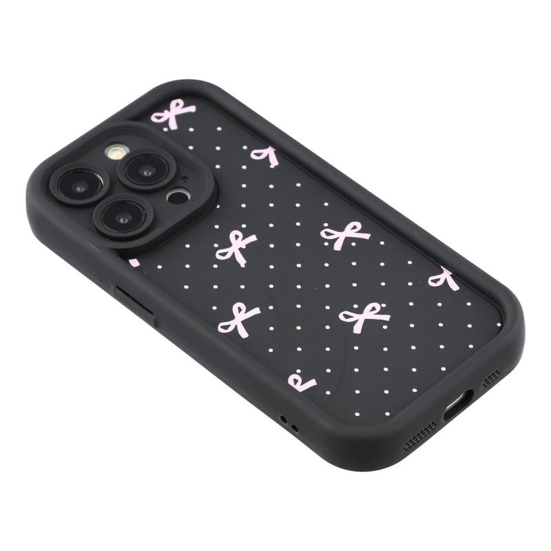 iPhone 15 Pro Stilvolle stoßfeste TPU-Hülle mit erhöhten Kanten - Schwarz / Gepunktete Schleife