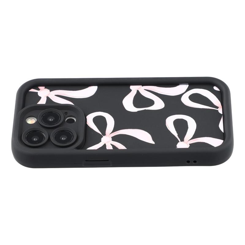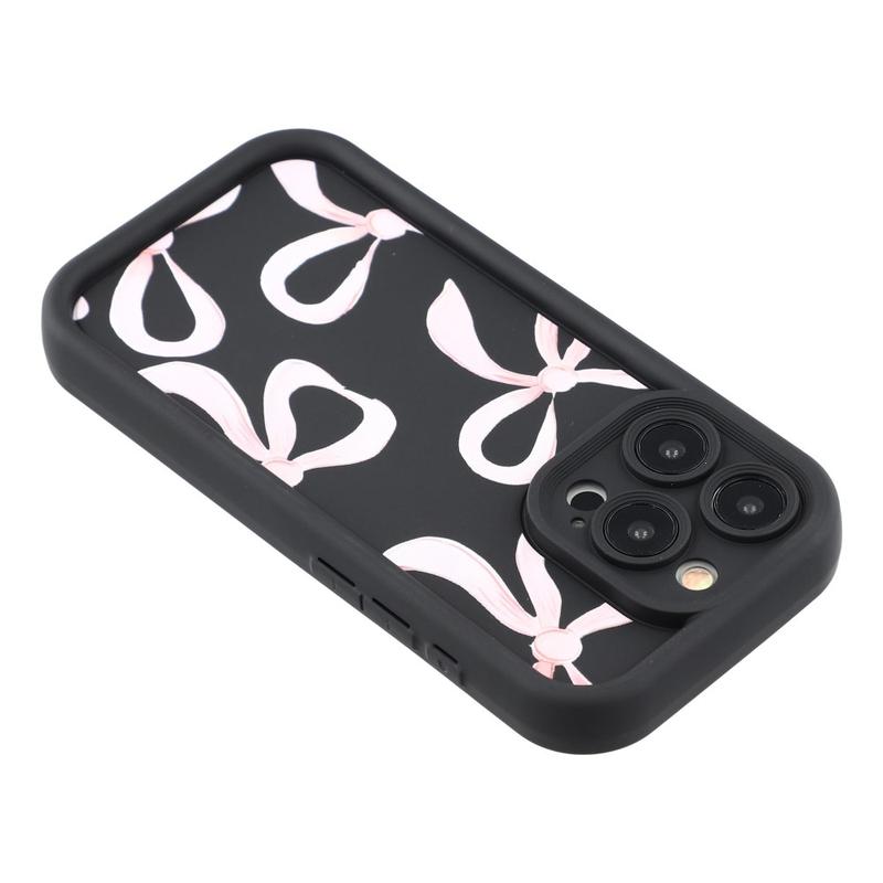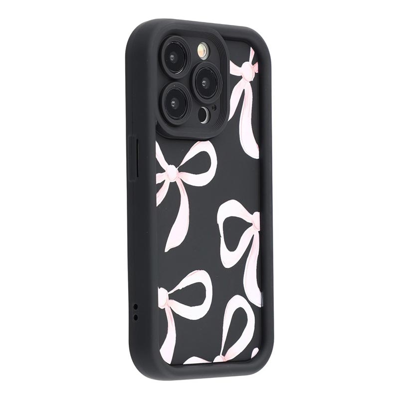 iPhone 15 Pro Stilvolle stoßfeste TPU-Hülle mit erhöhten Kanten - Schwarz / Große Schleife