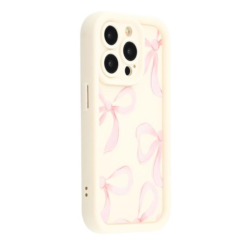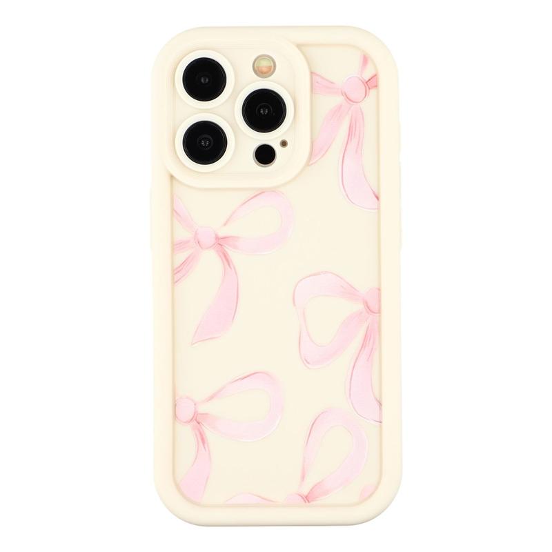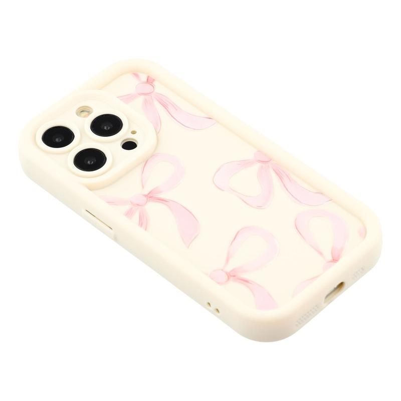 iPhone 15 Pro Stilvolle stoßfeste TPU-Hülle mit erhöhten Kanten - Weiß / Große Schleife