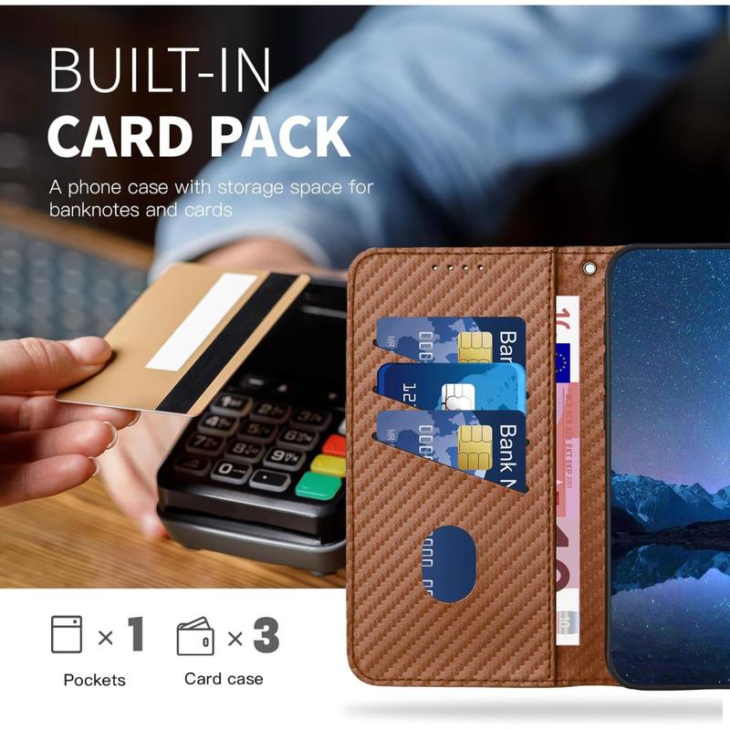 Dieses Wallet Case bietet elegantes Design, zuverlässigen Schutz und intelligente Benutzerfreundlichkeit. Die strukturierte Karbonfaser-Oberfläche sorgt für einen modernen, professionellen Look, während die innere TPU-Schicht Stöße bei versehentlichen Stürzen absorbiert. Die Freisprechfunktion und der abnehmbare Riemen sorgen für Komfort und Vielseitigkeit.