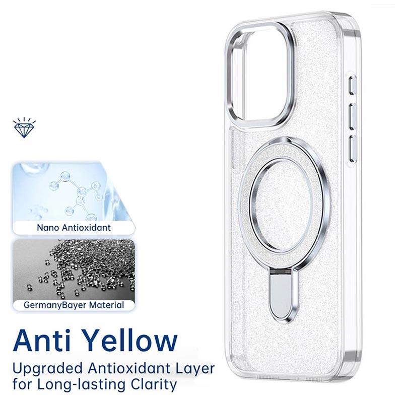 Glitter Hülle mit Kickstand für iPhone 15 Pro - MagSafe kompatible TPU + PC Hybrid Kickstand Cover