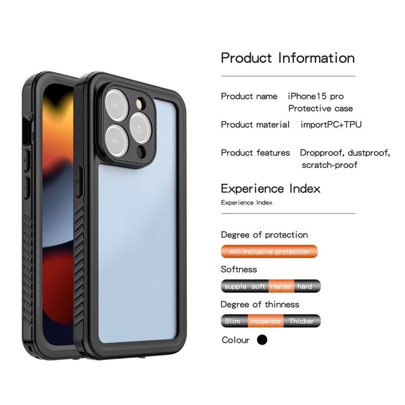 - Das wasserdichte IP68-Case dichtet Ihr iPhone 15 Pro vollständig gegen Witterungseinflüsse ab