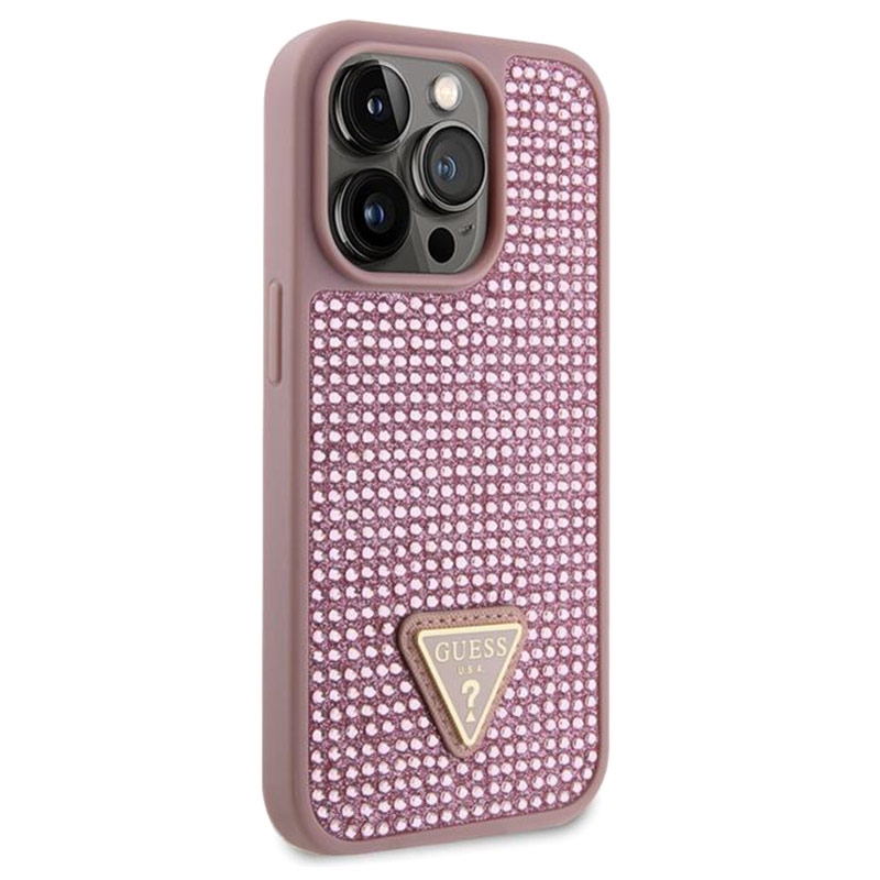 Guess Rhinestones Triangle Metal Logo Case für iPhone 15 Pro