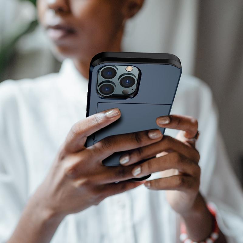 Diese Schutzhülle für das iPhone 15 Pro verfügt über einen praktischen Kartenschlitz mit Schiebefunktion, in dem Sie Ihren Ausweis, Ihre Kreditkarte usw. aufbewahren können. Darüber hinaus sorgen die Abschirmungsfunktionen dafür, dass Ihr wertvolles iPhone 15 Pro unbeschädigt bleibt, ohne dass es zusätzlich voluminös und schwer wird.