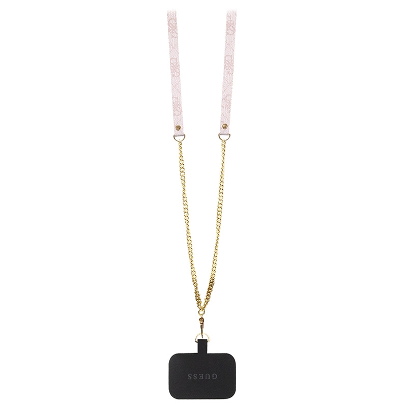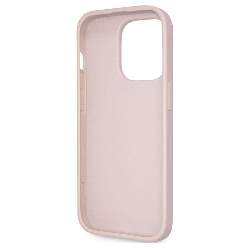 iPhone 15 Pro Max Guess 4G Strass Triangle Metal Logo Hülle mit Crossbody Riemen - Rosa