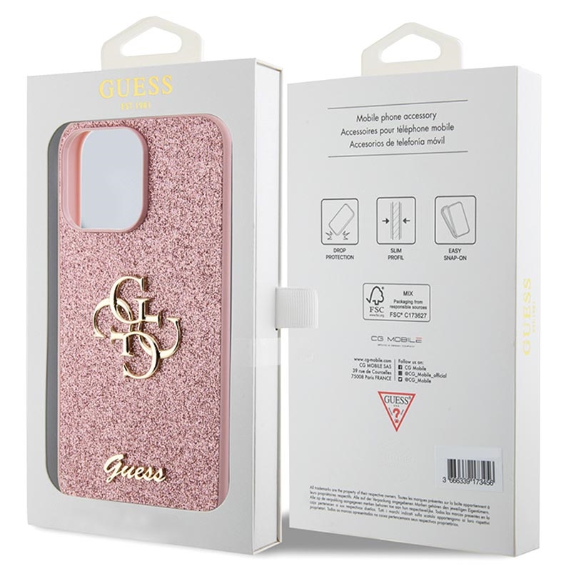 • Guess Fixed Glitter 4G Metal Logo Case für iPhone 15 Pro Max