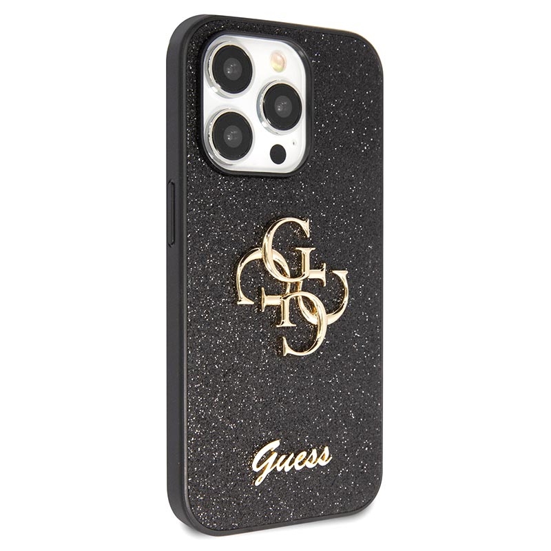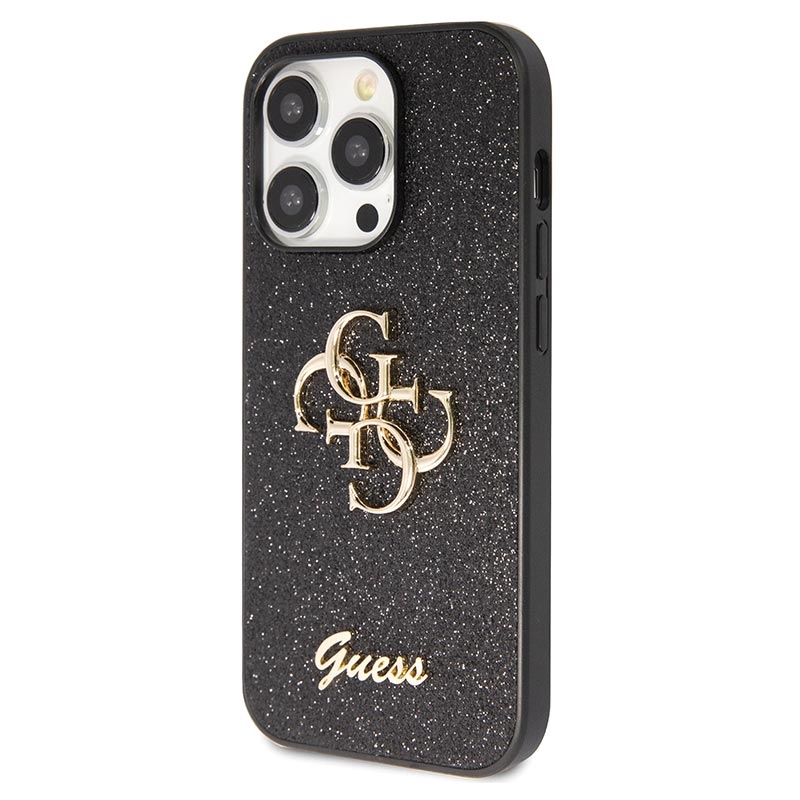 - Spektakuläre Guess Fixed Glitter 4G Metal Logo-Hülle für iPhone 15 Pro Max