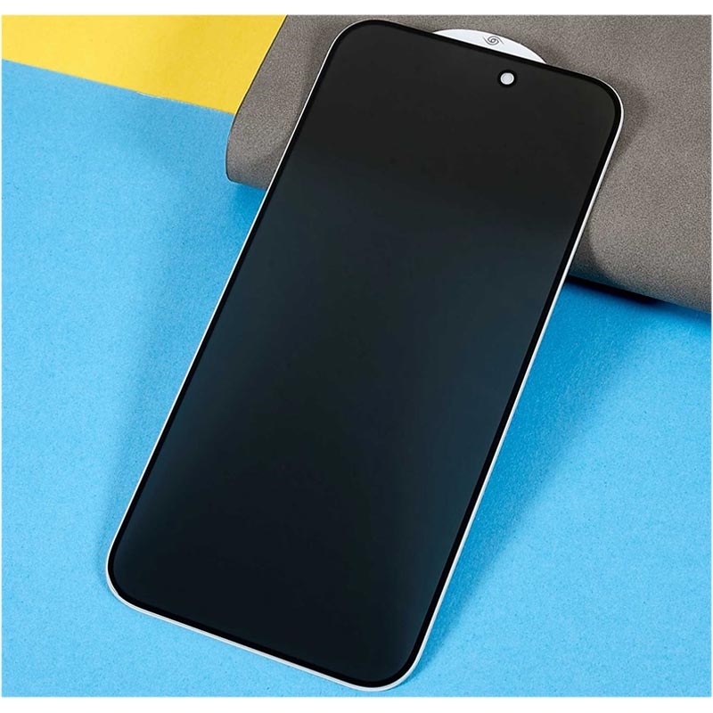 - Vollständiger Sichtschutz aus gehärtetem Glas für das iPhone 15 Pro Max
