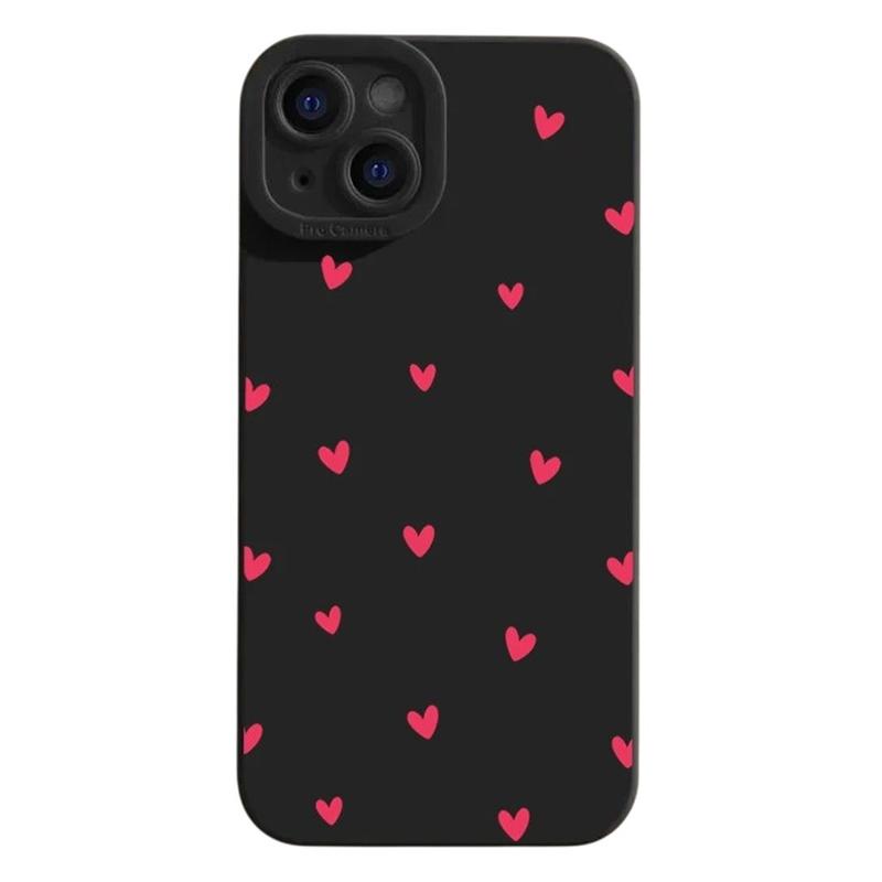 iPhone 15 Schlanke TPU-Hülle mit Herzmuster - schwarz / rot
