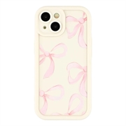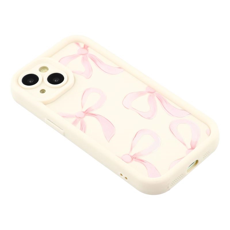 iPhone 15 Stilvolle stoßfeste TPU-Hülle mit erhöhten Kanten - Weiß / Große Schleife