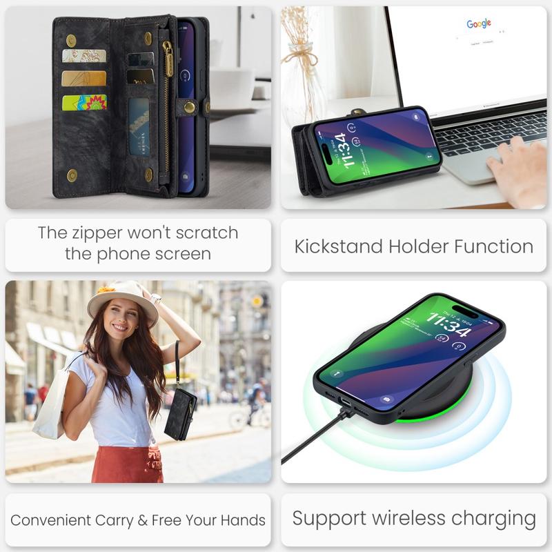 Machen Sie Ihren Tag supereffizient mit der Caseme 008 2-in-1 iPhone 16 Wallet Tasche.