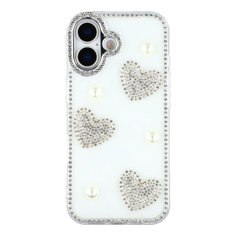 Diese iPhone 16 Hülle kombiniert zuverlässigen Schutz im Alltag mit glamourösem Stil. Mit schimmernden Strasssteinen an den Rändern und funkelnden Perlenherzen auf der Rückseite verwandelt sie dein iPhone 16 in ein modisches Accessoire und schützt es gleichzeitig vor Kratzern und Stößen.