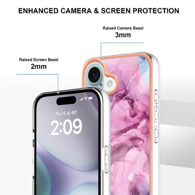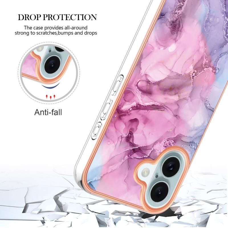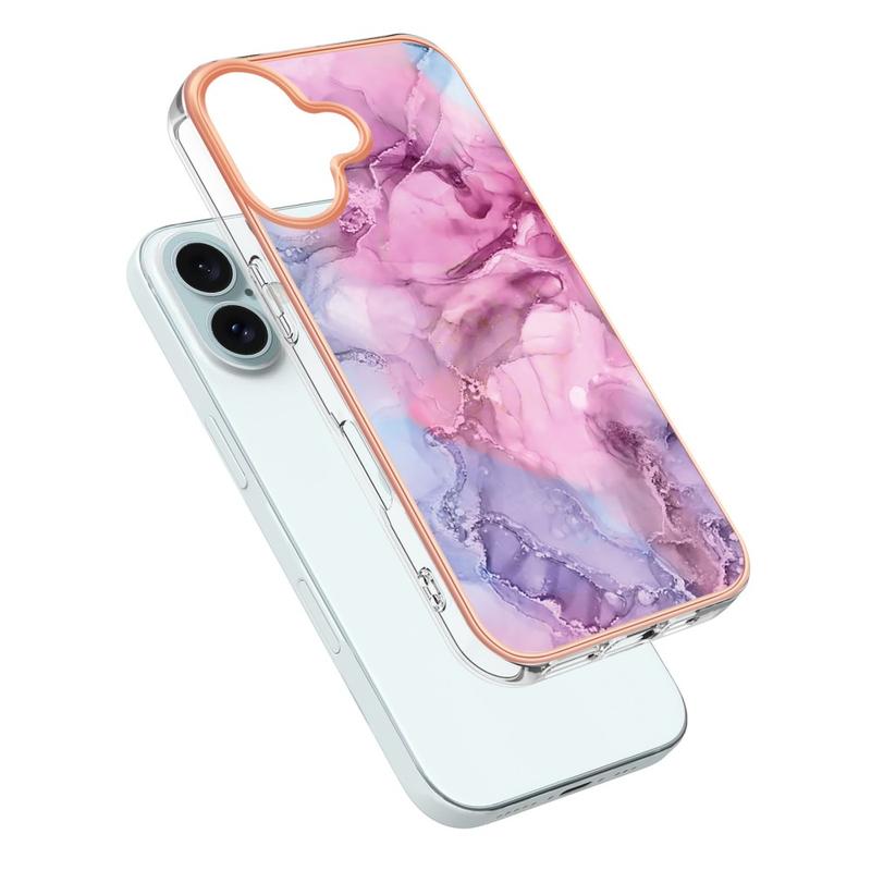 iPhone 16 Galvanisierte IMD TPU-Hülle mit Marmormuster - Blau / Rosa