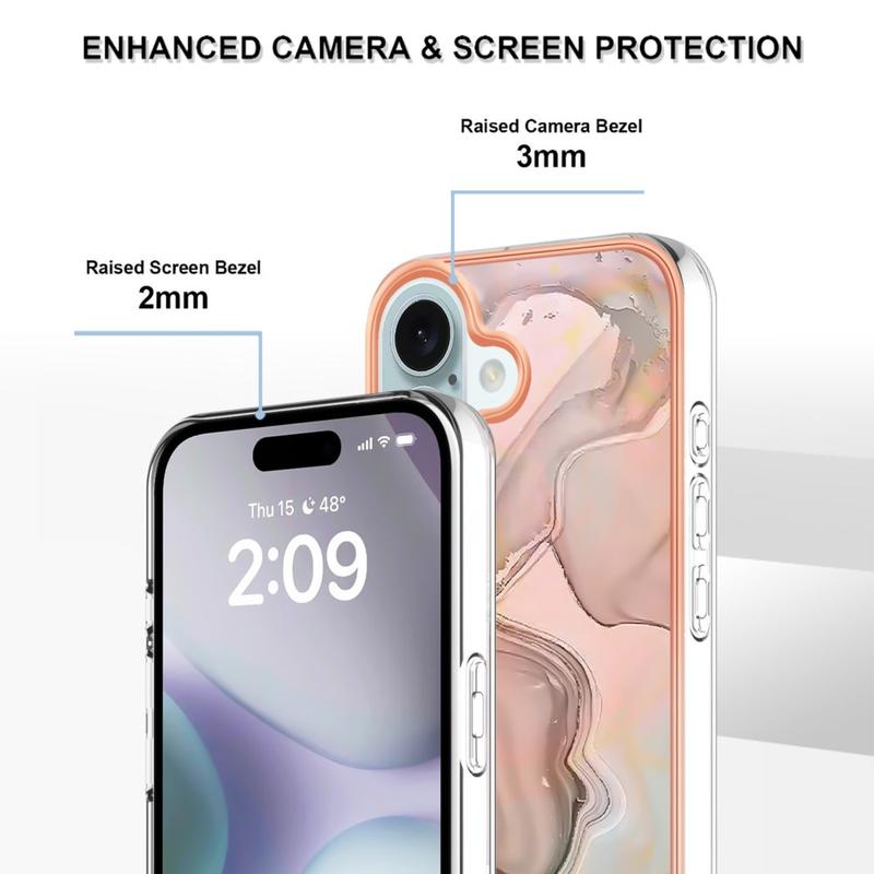 iPhone 16 Galvanisierte IMD TPU-Hülle mit Marmormuster - Rosa