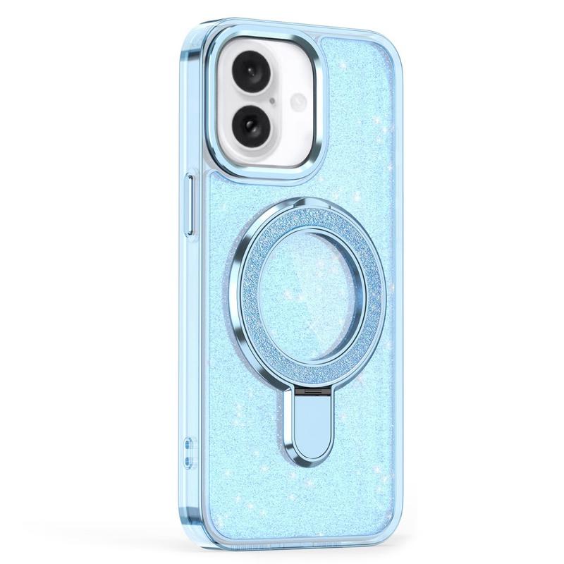 iPhone 16 Glitter Hybrid Hülle mit Kickstand - MagSafe-kompatibel - Blau