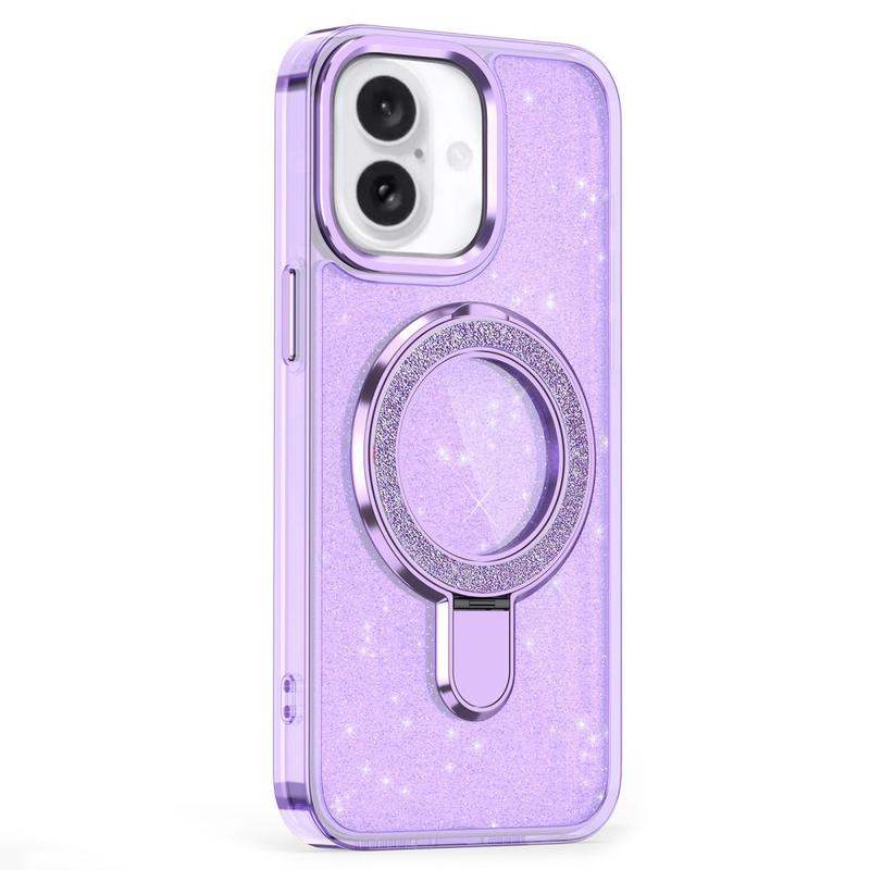 Glitter Hülle mit Kickstand für iPhone 16 - MagSafe kompatible TPU + PC Hybrid Kickstand Cover