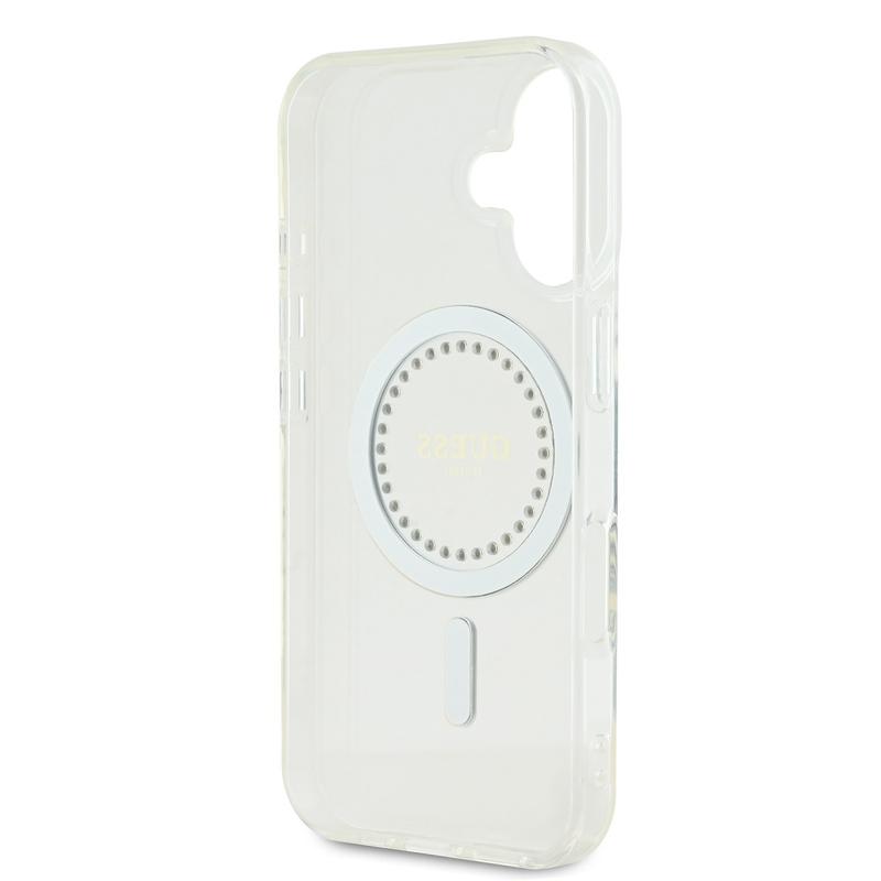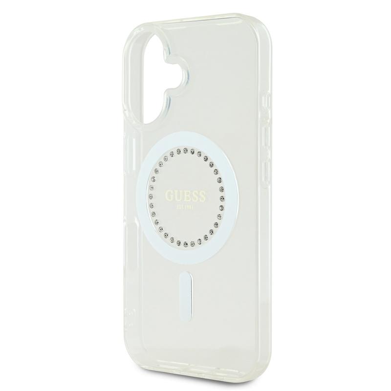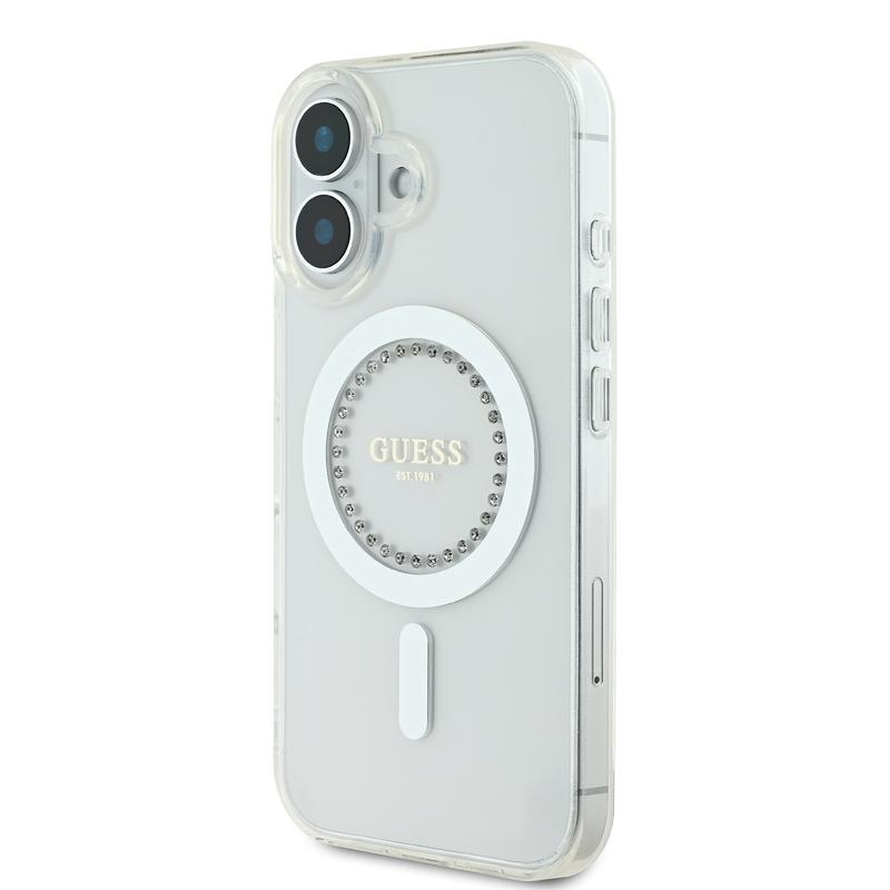 Guess IML Rhinestones Ring Hülle für iPhone 16 - MagSafe kompatibel
