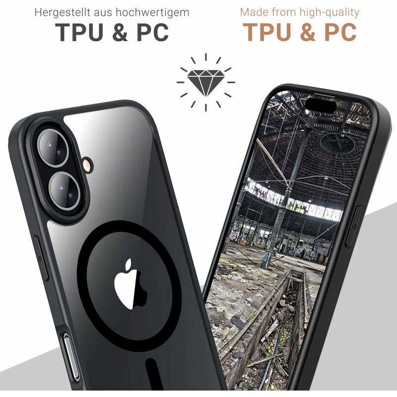 - Transparente Rückseite, um das Design des iPhone 16 zu zeigen.