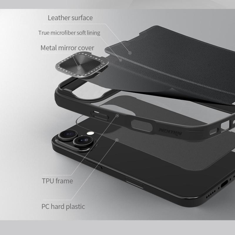 • Nillkin Qin Prop Flip Hülle für iPhone 16 - mit Schutz für das Kameraobjektiv
