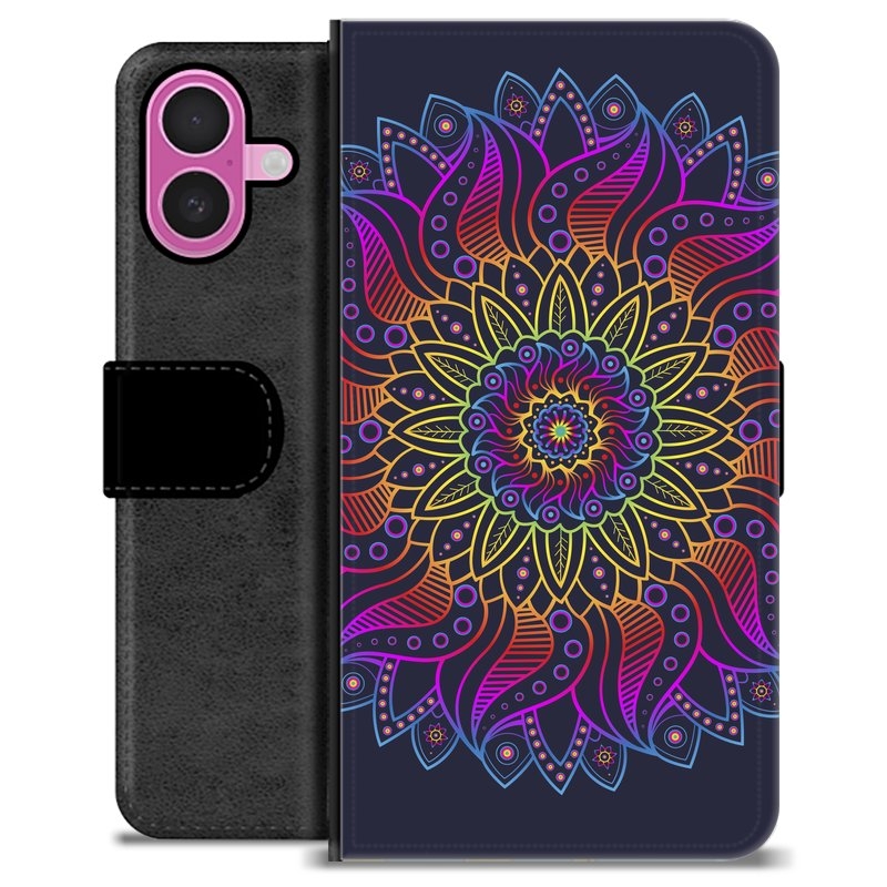 iPhone 16 Plus Premium Schutzhülle mit Geldbörse - Buntes Mandala