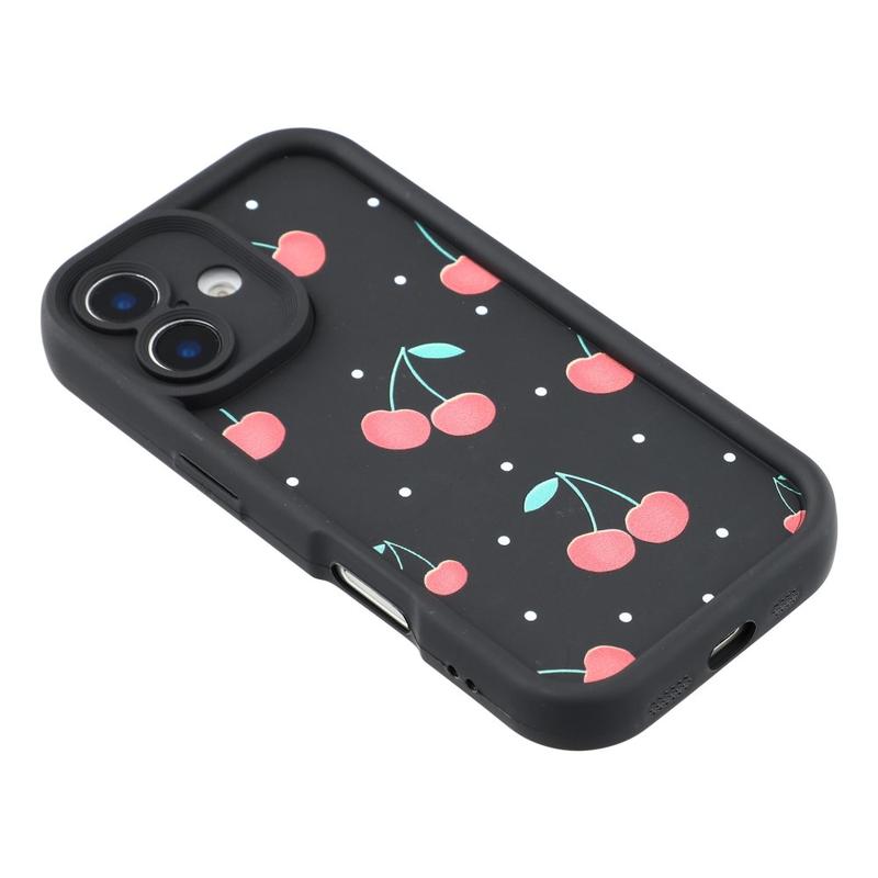 iPhone 16 Plus Stilvolle stoßfeste TPU-Hülle mit erhöhten Kanten - Schwarz / Gepunktete Schleife