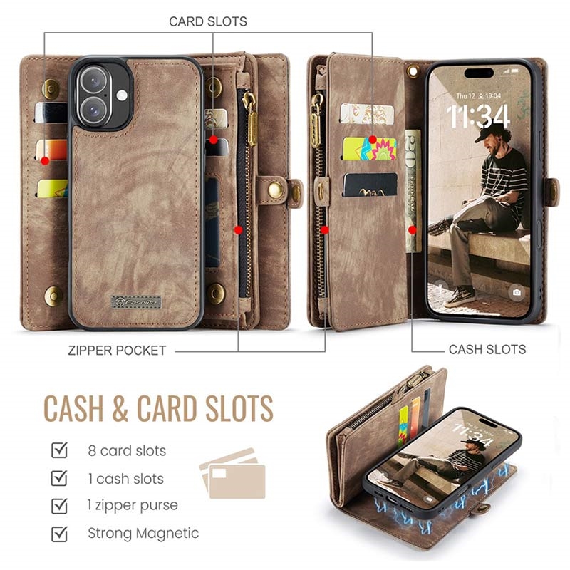 Caseme 008 2-in-1 Multifunktions-Brieftasche für iPhone 16 Plus