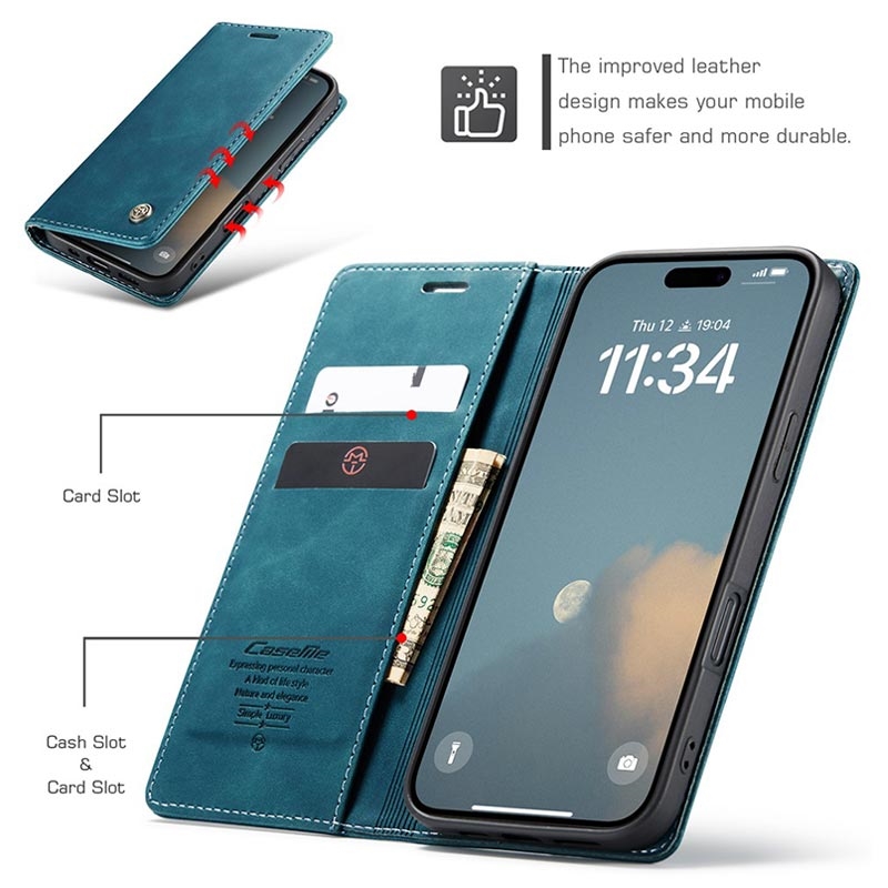 - Eingebaute Magnete halten die Caseme 013 Series Wallet-Hülle geschlossen
