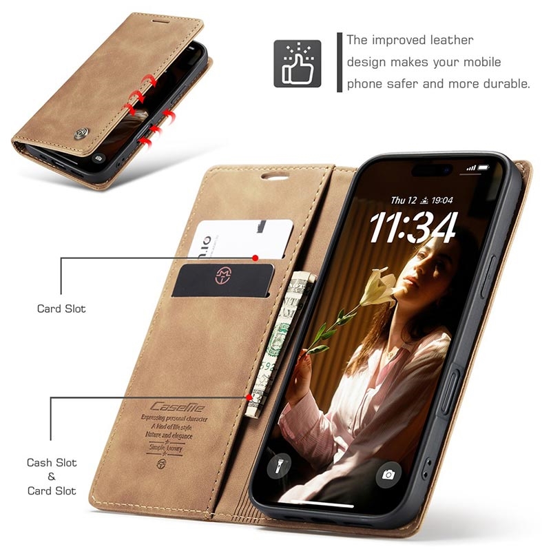 iPhone 16 Plus Caseme 013 Serie Schutzhülle mit Geldbörse - Braun