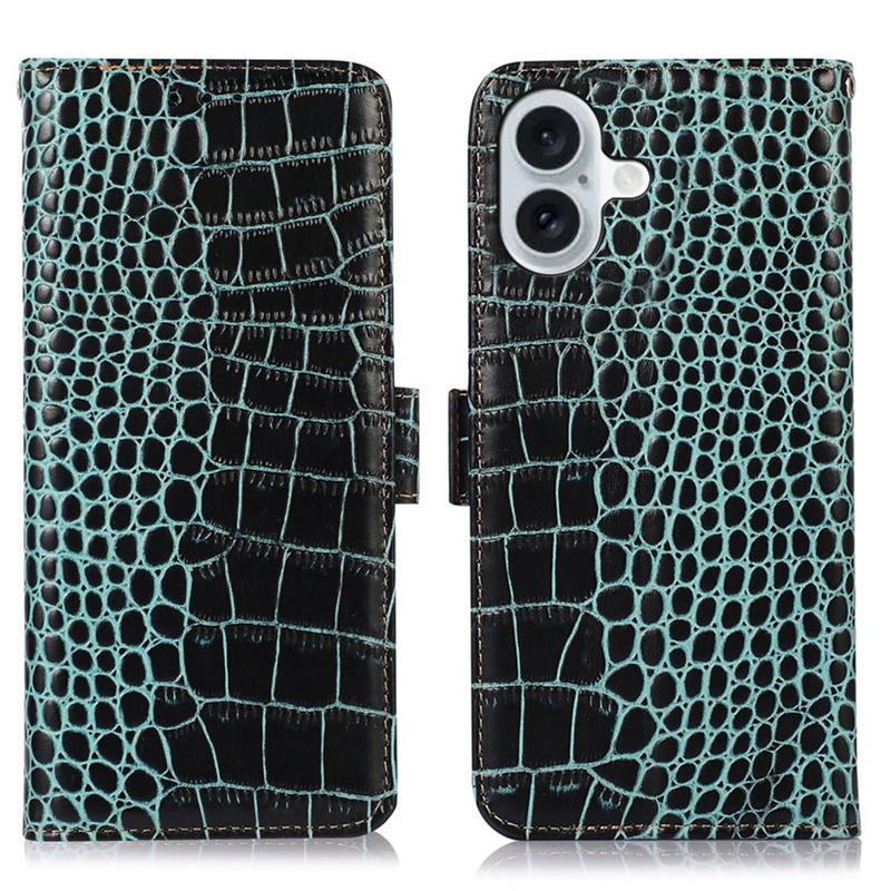Crocodile Serie Lederhülle mit Geldbörse mit RFID für iPhone 16 Plus