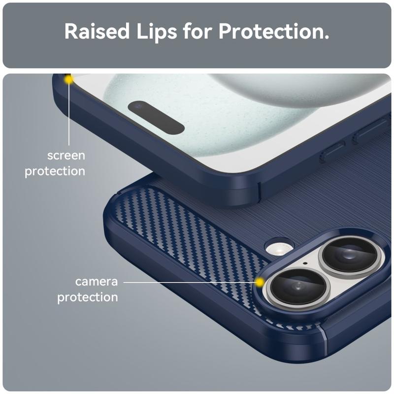 Das Brushed TPU Case schützt Ihr iPhone 16 Plus angemessen und verleiht ihm dank des Kohlefasermusters auf der Rückseite einen tollen Stil. Die Hülle schützt Ihr iPhone 16 Plus auch vor Überhitzung, indem sie die Wärme ableitet.