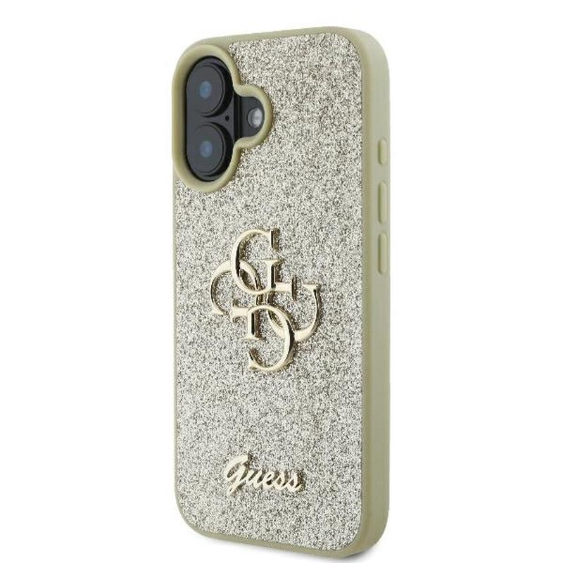 iPhone 16 Plus Guess Fixed Glitter 4G Metal Logo Hülle - Gold