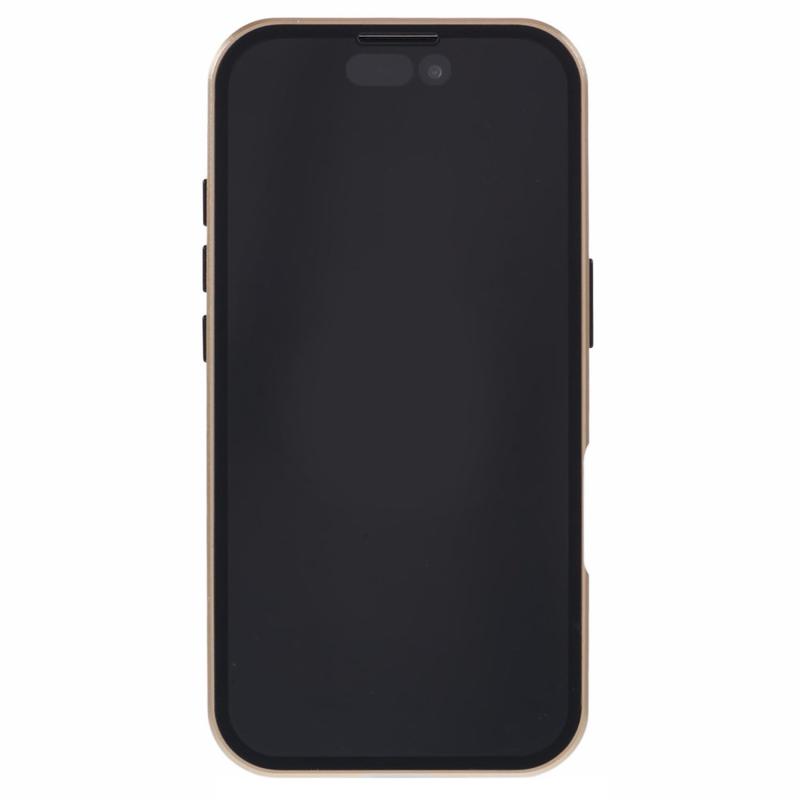 Das zweiteilige Design bietet einfache Befestigung und sicheren Verschluss dank Magneten und Schnalle. Eingebautes gehärtetes Glas auf der Vorderseite schützt das Display vor Kratzern und Stößen, der seitliche Metallrahmen vor Stößen und Stürzen, während mattes Verbundmaterial die Rückseite des iPhone 16 Plus abschirmt.
